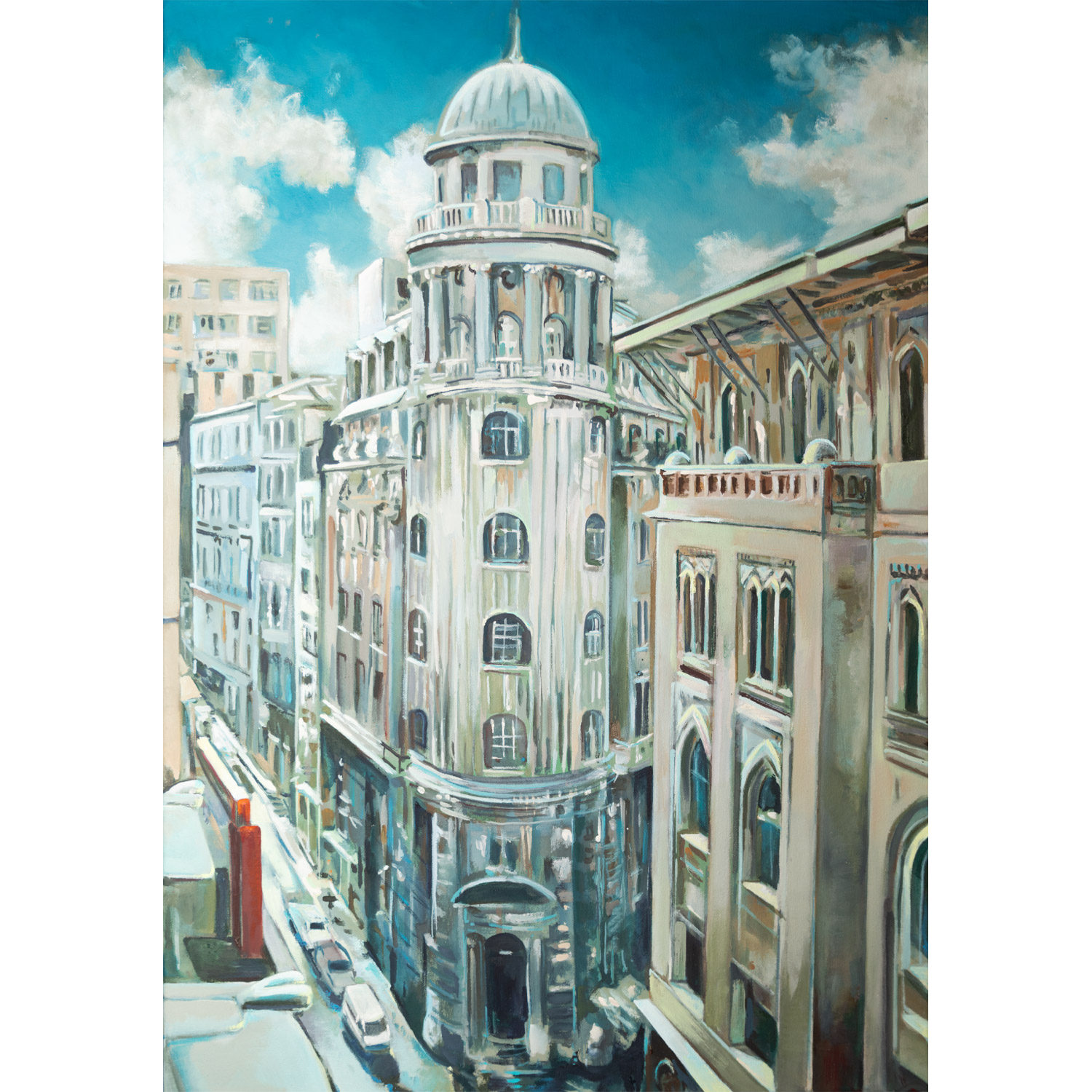 Die deutsche Künstlerin Dorothea Schüle präsentierte 2024 in der Türkischen Botschaft Düsseldorf ihre Ausstellung „Istanbul“, in der sie die historische Tiefe und Atmosphäre der Stadt malerisch einfing. Dieses Werk ist Teil dieser Serie.